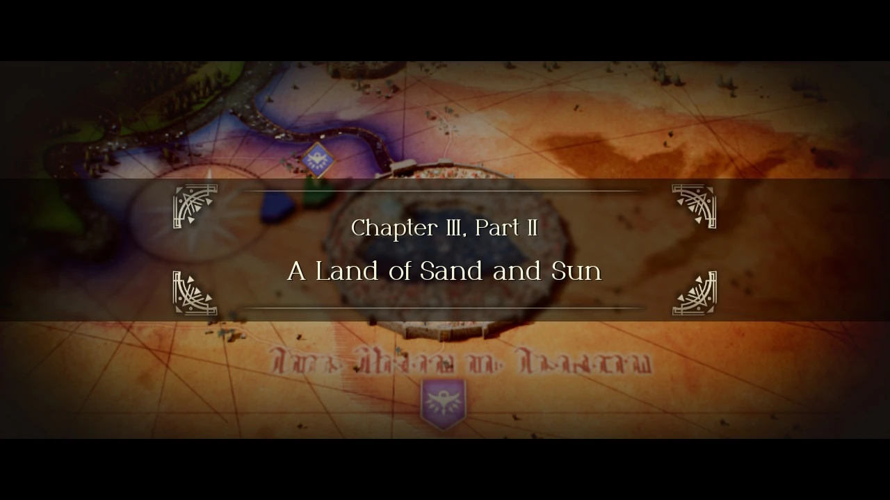A Land of Sand and Sun is the second part of the third chapter of Triangle Strategy, available when the player chooses to go to Hyzante.
